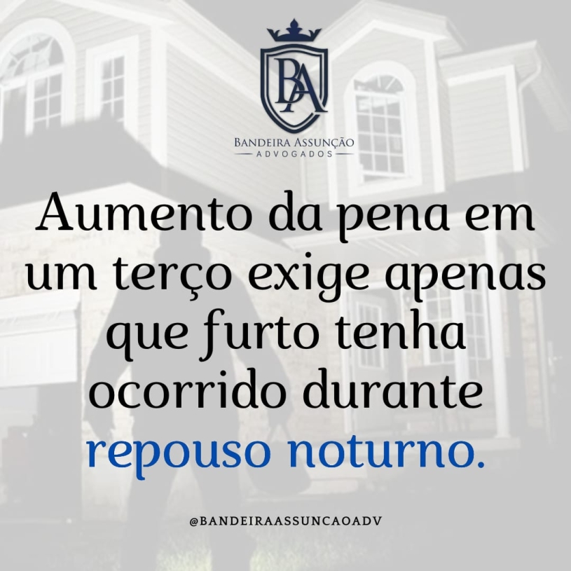 “Se o crime de furto é praticado durante o repouso noturno, ou seja, na hora em que a população se recolhe para descansar, valendo-se da diminuição ou precariedade de vigilância dos bens, ou, ainda, da menor capacidade de resistência da vítima, a pena será aumentada de um terço, não importando se as vítimas estão ou não dormindo no momento do crime, ou o local de sua ocorrência, em estabelecimento comercial, residência desabitada, via pública ou veículos”, concluiu.