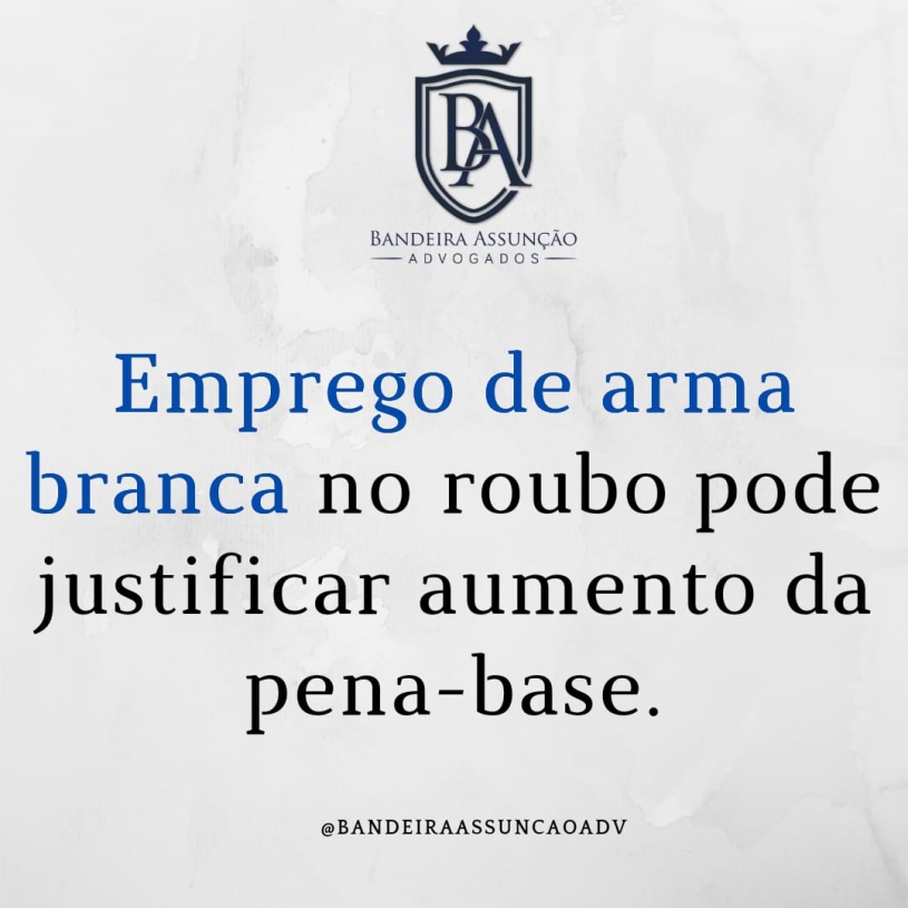 A Terceira Seção do Superior Tribunal de Justiça (STJ), sob o rito dos recursos repetitivos (Tema 1.110), estabeleceu tese no sentido de que, em razão da novatio legis in mellius estabelecida pela Lei 13.654/2018, o emprego de arma branca, embora não configure mais causa de aumento do crime de roubo, poderá ser utilizado como fundamento para a majoração da pena-base, quando as circunstâncias do caso concreto assim justificarem.