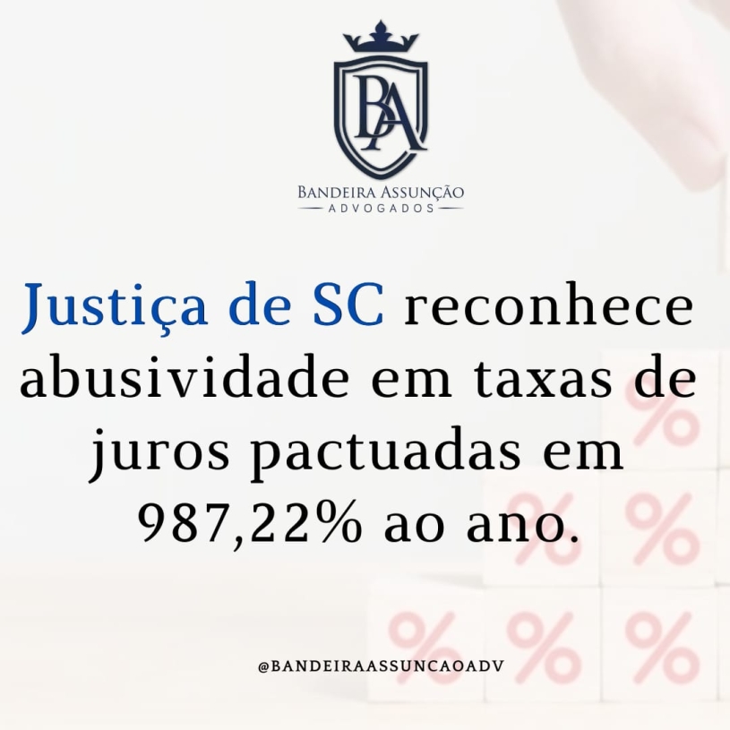Justiça de SC reconhece abusividade em taxas de juros pactuadas em 987,22% ao ano