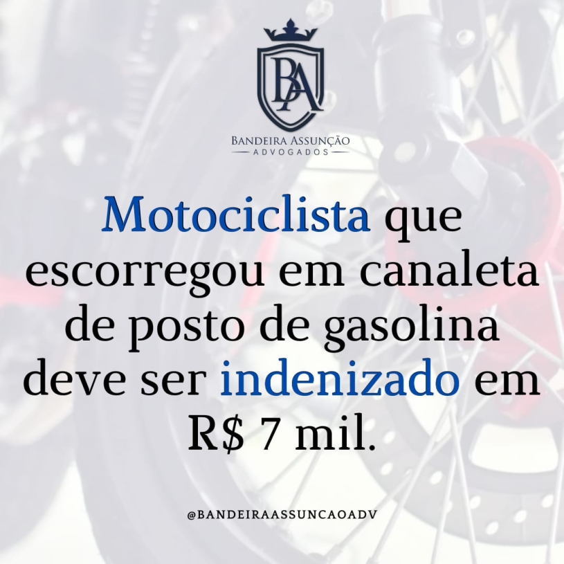 Motociclista que escorregou em canaleta de posto de gasolina deve ser indenizado em R$ 7 mil